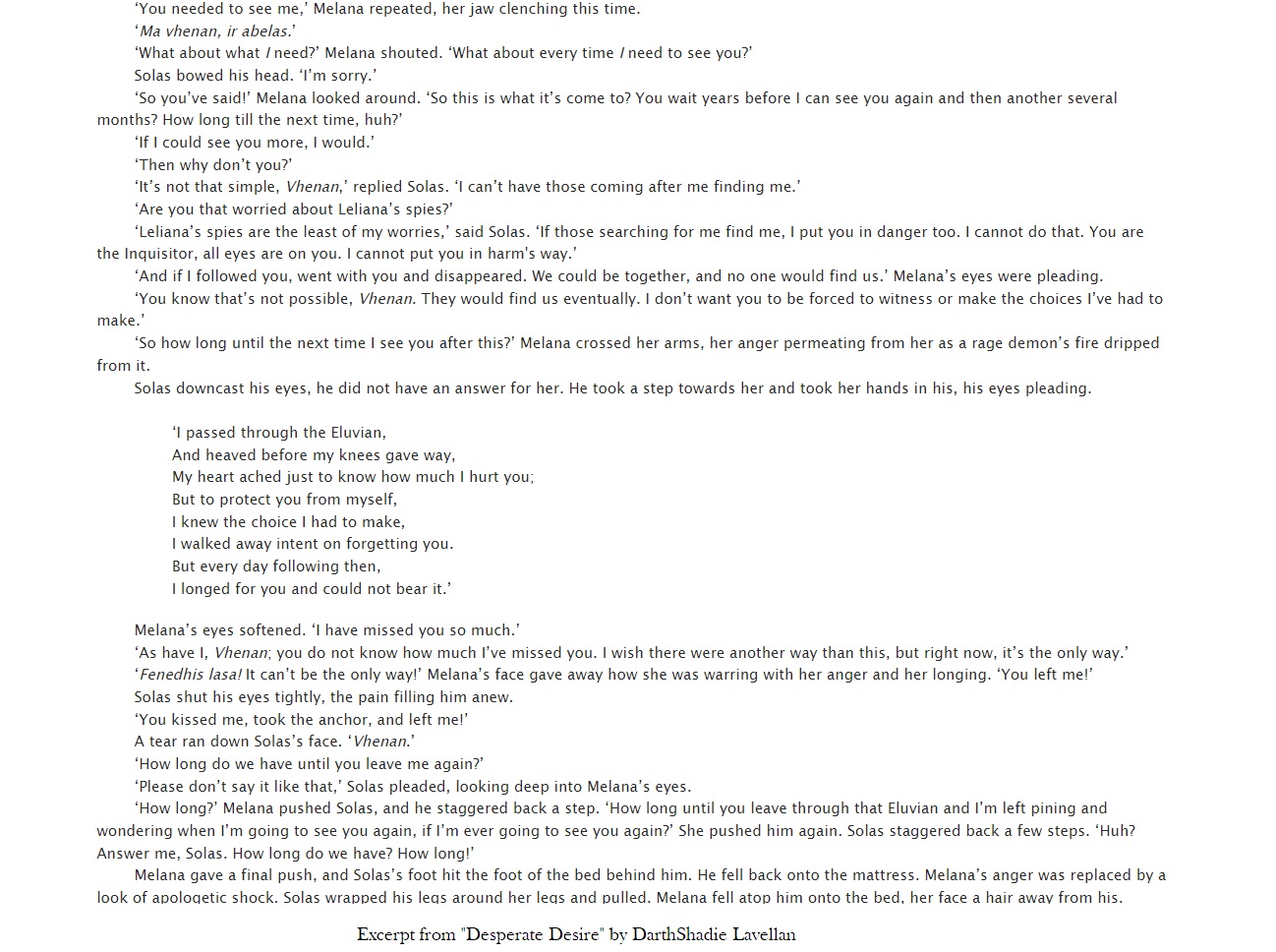 Here are some excerpts from various Fan-Fiction short stories.