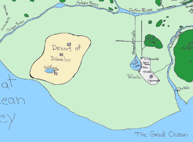The magical polcs who dwell in the Desert of Dûnelor in the Great Ocean Valley originally came from the far and distant Land of Dûnelor. Dûnelor is home to many deserts, oases and jungles. Those who travelled to the Great Ocean Valley established a magical desert wherein they would be protected from the harsh winters of their new home and could retain the weather to which they were so accustomed.