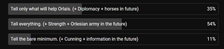 - A Diplomacy advantage allowed you to bribe the Chevaliers. Having lowest points in Strength resulted in Barden being apprehended and wounded.