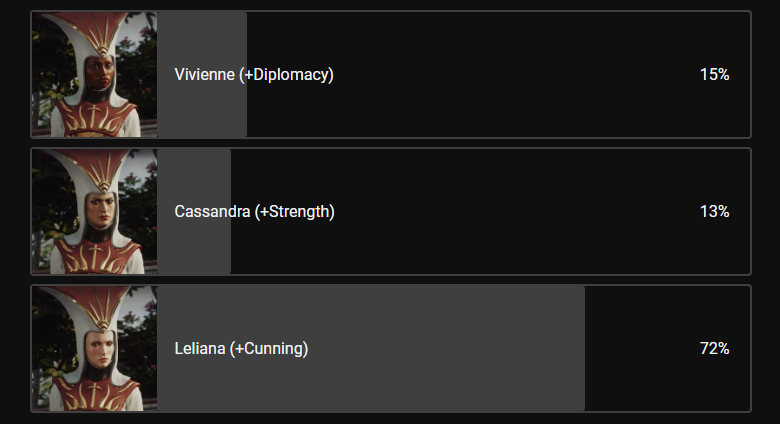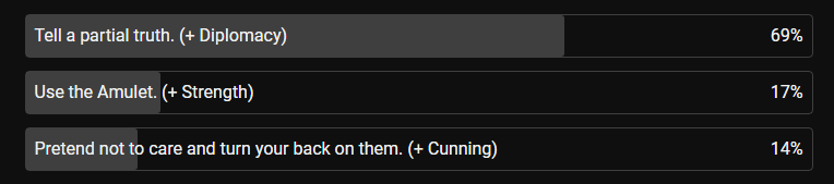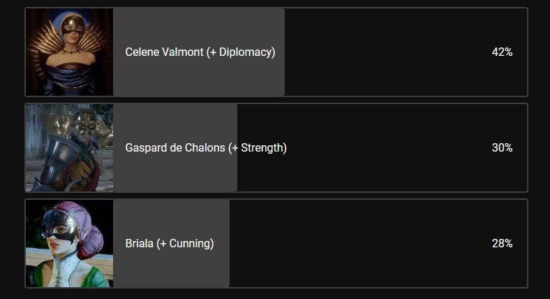 - A Diplomacy advantage allowed you to bribe the Chevaliers. Having lowest points in Strength resulted in Barden being apprehended and wounded.