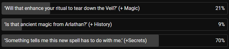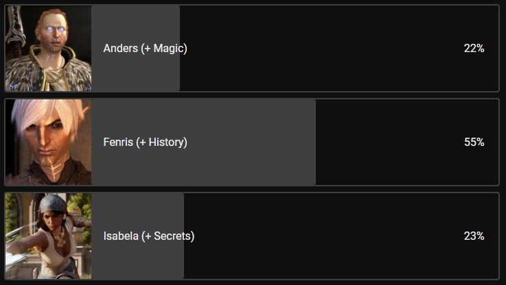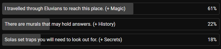 ‘We have to assess what we know to think clearly,’ Halani offers. ‘Solas and the Venatori aren’t our only threats who could exploit the Otherworlder for their gains. Remember what Caius said about an ancient source of magic that isn’t the Dread Wolf?’