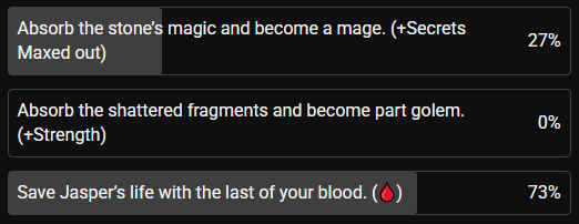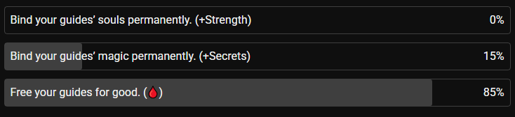 NOTE: Blood Magic choices are limited. You can only select 5 out of the 8 available options throughout the story before your usable blood is depleted. Choose wisely.