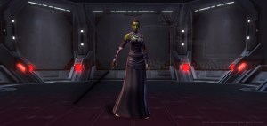 They hurried towards the lift. Before they could reach it, a large wind pushed them all the way back to the door from which they had entered. From above them, in the centre of the room, dropped down a Mirialan, landing with sleek grace on her two feet. She bent low as she landed. Then, she stood to her tall height and looked at them.