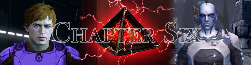 ‘Fascinating,’ whispered Knarf, moving closer to the holoscreen. ‘Then from when? Wait,’ Fane took a step towards Talyc, ‘you’re telling me you’ve been on Dromund Kaas before?’