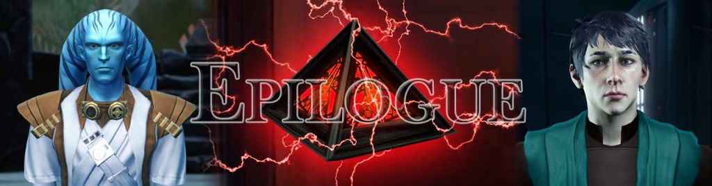 Lian’s friends lingered a while longer, then the leaders and his friends made their way out, and went to celebrate on Mandalore. Lian knew the Grand Master would return to Coruscant and that Lord Void would return to Dromund Kaas. Since Lian was not sure if the Holocron was entirely safe, he had bade Nriwe and Thera join their friends on Mandalore to celebrate. He knew it would do his wife some good to be among her clanmates and close friends.