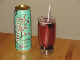– Arizona Green Tea iced tea with Ginseng and Honey (must be that specific one)