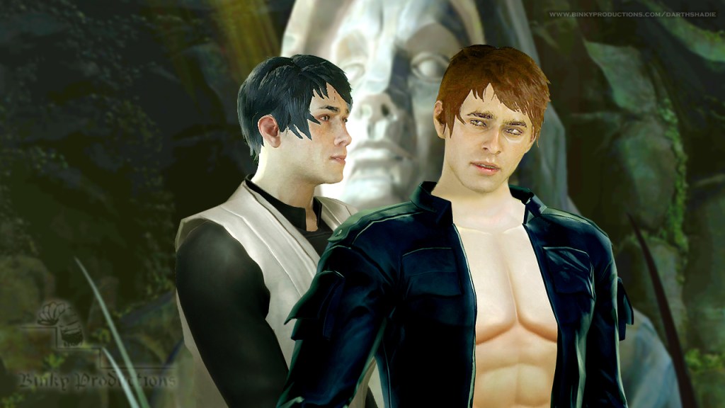 His head is from Dragon Age: Inquisition. It’s not a perfect angle. I did have trouble getting the little bit of his outfit to have the right perspective, but it does the job.