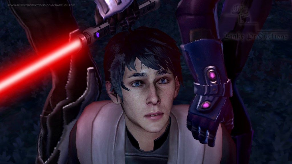 Technically in the scene, Talyc has his vibroblade out and Fane blocks Awgro’s lightsaber with his own, but there is a moment of tenseness where Awgro uses to Force to send Fane crashing against the glass and Void comes in to give them a hand. The image does depict the tension well, however, and I am most proud of this one.